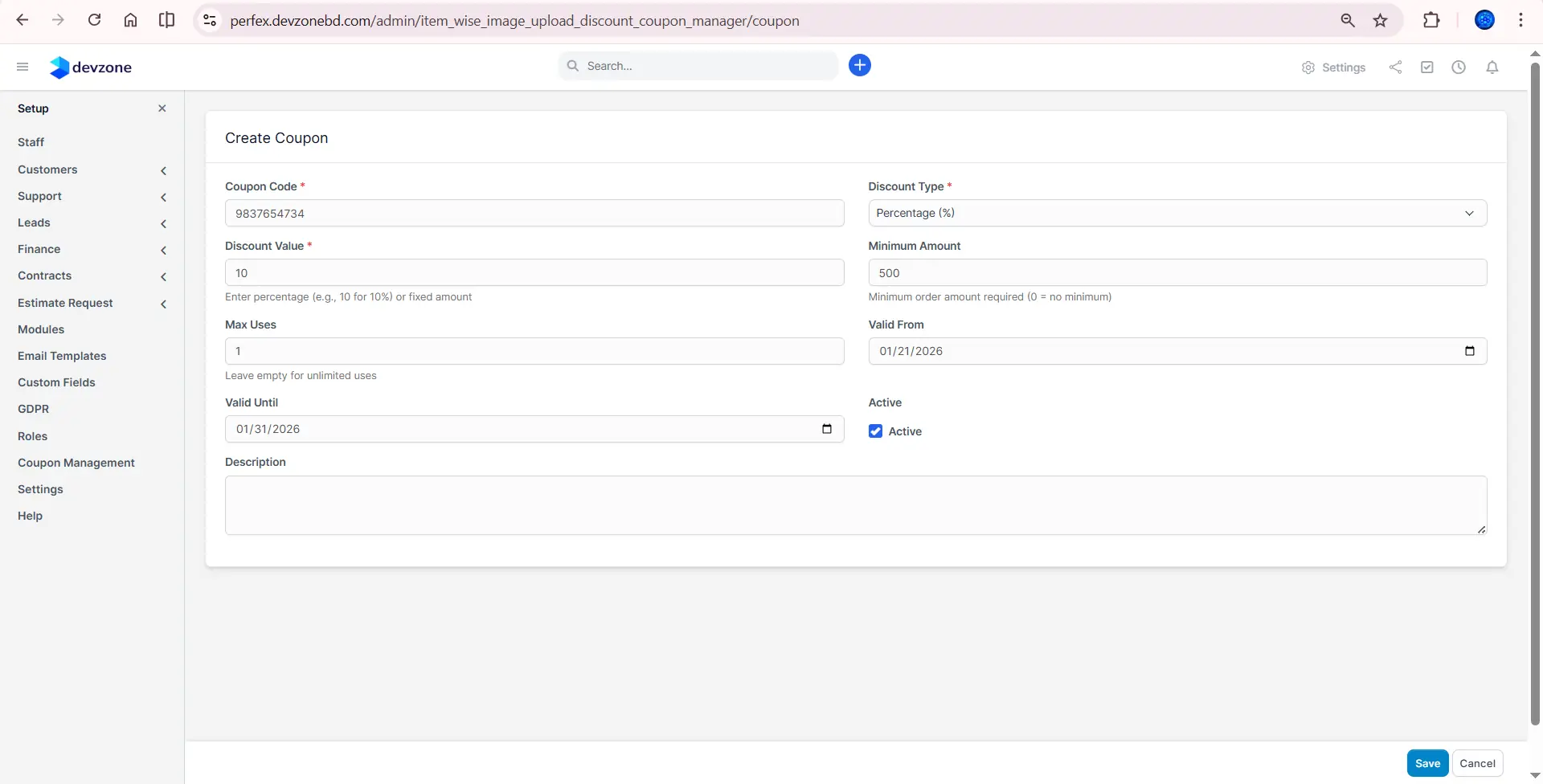 Item Wise Image Upload, Discount and Coupon Manager is a comprehensive Perfex CRM add-on that enhances item lines in invoices, proposals, and estimates by adding powerful discount functionality, image uploads, and coupon code management.