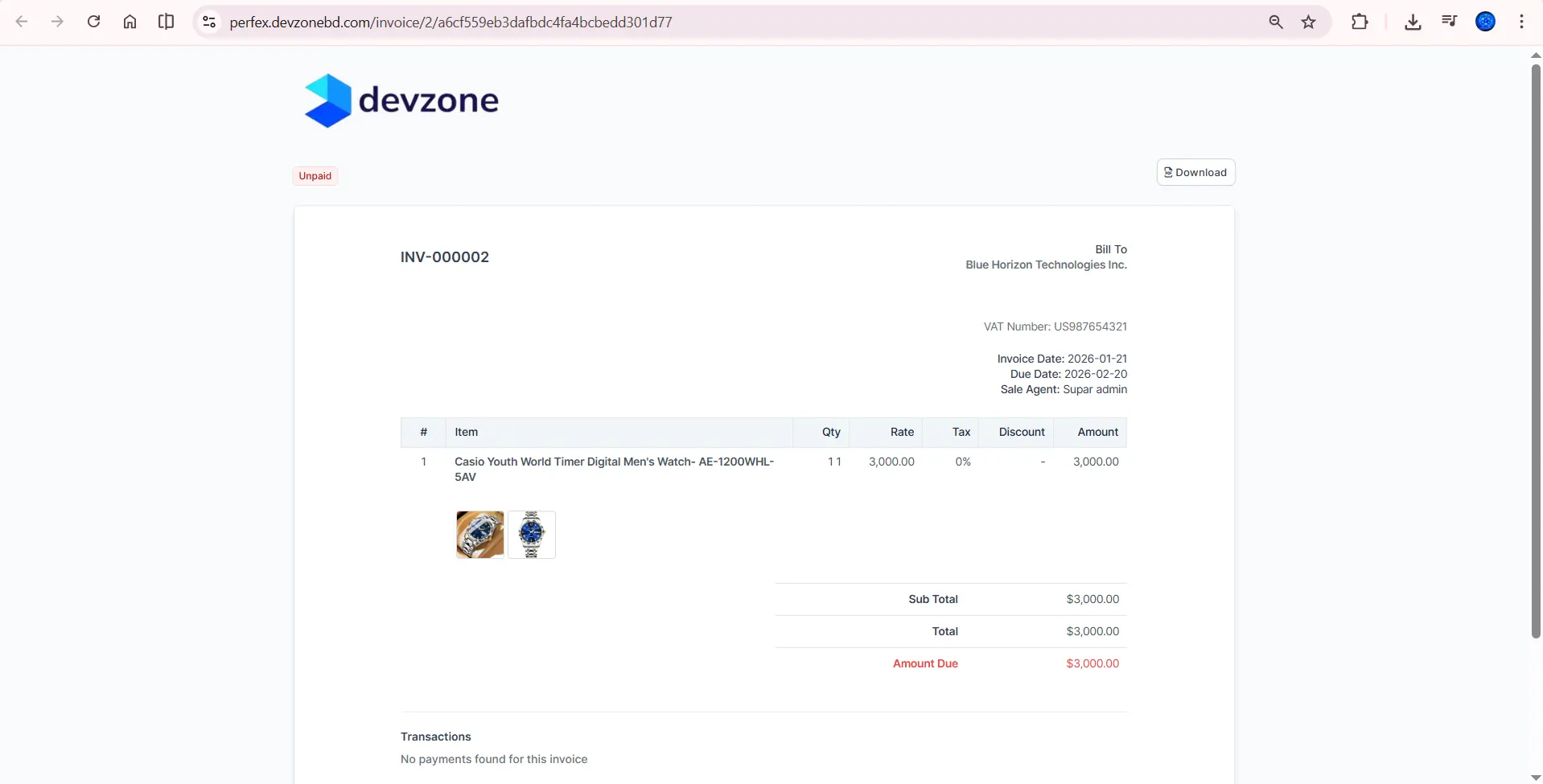 The ‘View PDF’ and ‘View Invoice as Customer’ interfaces display item-wise images for each item, and item-wise discounts are also shown per item.